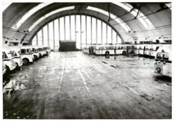Interiør fra Busshall på Bjølsen. Fotograf Nerlien – 1950