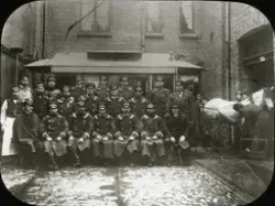Renovasjonsarbeider i bar overkropp. Nys... Fotograf Ukjent – 1946