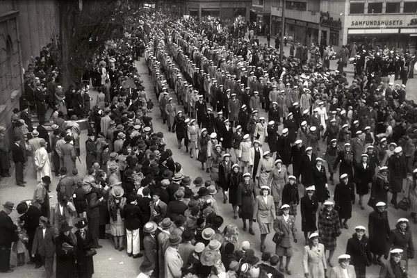 Korrekt referanse til dette bildet er "Fotograf: Ukjent. Arbeiderbevegelsens arkiv og bibliotek/0036172"