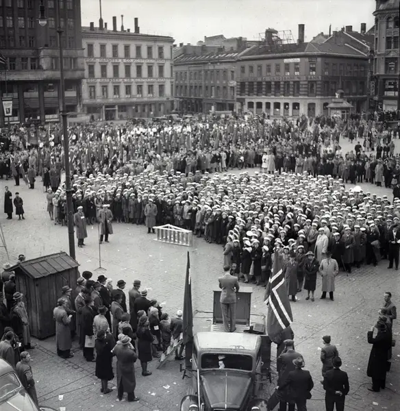 Korrekt referanse til dette bildet er "Fotograf: Ukjent. Arbeiderbevegelsens arkiv og bibliotek/0036185"