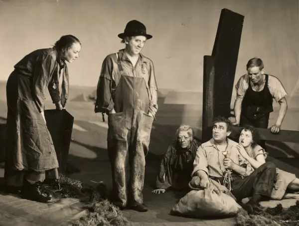 "Tobakksveien" (Tobacco Road av Erskine Caldwell) på Nationaltheatret, september 1936. Blant andre Harald Stormoen, Bertha Ræstad, Andreas Aabel, Alfhild Stormoen o. a.