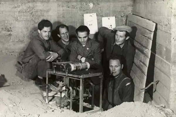 Trykking av LO's illegale medlemsblad "Fri Fagbevegelse" under krigen. Fra 1944 ble bladet produsert i kjelleren under Veterinærhøyskolens lokaler i General Birchs gate på Adamstuen - hvor dette bildet er tatt.
