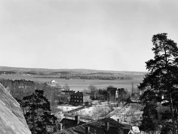 Villa Grande på Bygdøy. Gimle. Bygget for skipsreder H. Østervold i 1917. Privatbolig for Maria og Vidkun Quisling i årene 1941 - 1945. Senere pleie- og rehabiliteringshjem. Statens helsesøsterskole fra 1963. Fra 2005: Senter for Holocauststudier og livssynsminoriteters stilling i Norge. Utsikt. Mars 1952.