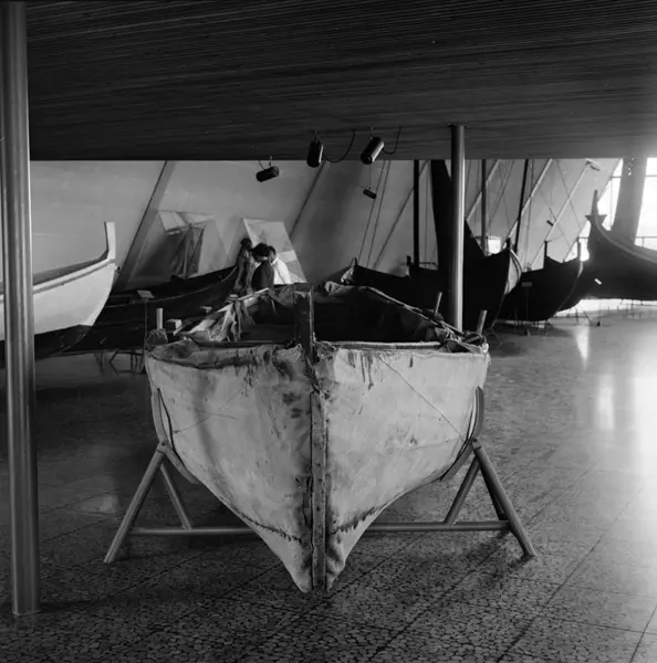 Bygdøy. Sjøfartsmuseet. En av de fire redningsbåtene som ble bygget i all hemmelighet i kjølerommet om bord på M/S Nyhamn under krigen i 1940. Juli 1966