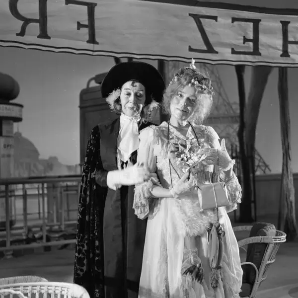 Nationaltheatret. Hovedscenen..DEN GALE FRA CHAILLOT av Jean Giraudoux. .Premiere 28.02.1963..Medvirkende: Gry Enger, Gisle Straume, Kolbjørn Buøen, Alfred Maurstad, Lillebil Ibsen, Gerhard Bjelland, Wilfred Breistrand, Aase Bye o. a.