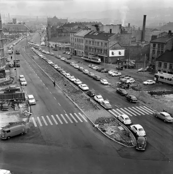 Gunerius gate. Vaterland/ Guneriusgate. 35 meter bred gate gjennom Vaterland. Den nye Guneriusgate, opparbeidet ifølge reguleringsplan for Vaterland. Oktober 1965