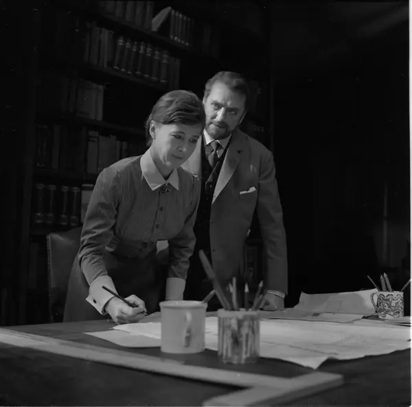 Nationaltheatret. Hovedscenen..BYGGMESTER SOLNESS av Henrik Ibsen. Premiere 03.09.1969..Medvirkende: Georg Løkkeberg, Helen Brinchmann, Henny Moan, Jørn Ording og Liv Thorsen..