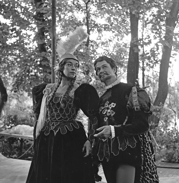 Sommerteatret i Frognerparken. En Midtsommernatts drøm av William Shakespeare. 1963..Medvirkende: Bjarne Thomsen, Thom Bastholm, Karen Randers-Pehrson, Elisabeth Strøm, Gerd Jørgensen med flere.