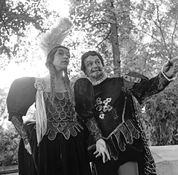 Sommerteatret i Frognerparken. En Midtsommernatts drøm av William Shakespeare. 1963..Medvirkende: Bjarne Thomsen, Thom Bastholm, Karen Randers-Pehrson, Elisabeth Strøm, Gerd Jørgensen med flere.