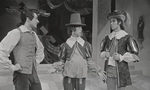 Nationaltheatret. Hovedscenen..SCAPINS SKØYERSTREKER av Molière. Premiere 03.10.1970..Medvirkende: Sverre Anker Ousdal, Gerhard Bjelland, Leif Skarra, Knut Husebø, Lars Nordrum, Sverre Hansen, Anne Marie Ottersen o. a.