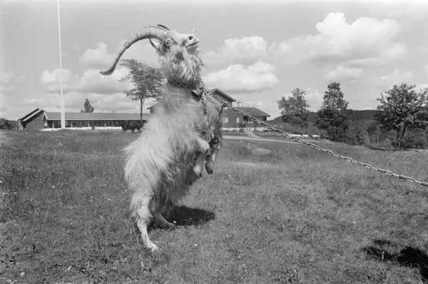Nordmarka: Ullevålseter Langt på landet, men bare en halv time fra byen. Steinbukken "Tordenskjold", geiter og ponnien "Truls", er blant alle de andre dyrene på Ullevålseter. Juli 1966