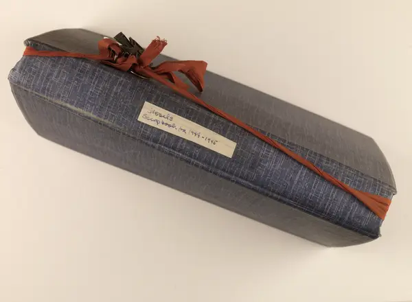 Album laget av Sissel Lie, senere Bratz (1922-1983). Foto og utklipp fra tiden hun tjenestegjorde i Den norske hærs kvinnekorps i Storbritannia under andre verdenskrig. Hun oppnådde graden fenrik i kontrolltjenesten. Albumet har tittelen Sissels Scrapbook fra 1944-45. Forside 2.