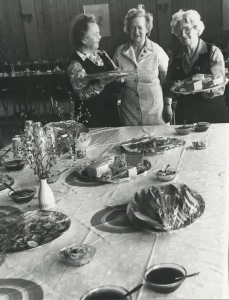 1. mai 1980, i Oslo, på Ekeberghuset, forsamlingshus. Personer på bildet: Ruth Hansen i midten. 1-mai arrangement arrangert av Ekerberg arbeidersamfunn. Fra en artikkel om Ruth Hansen i Arbeiderbladet "En veteran feirer 1. mai"