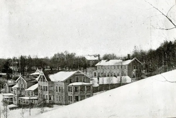 Sanatoriebygningene. Fra et hefte "Grefsen sanatorium for tuberkuløse". Bildet er sannsynligvis klippet ut fra en informasjons- eller reklamepublikasjon for sanatoriet.