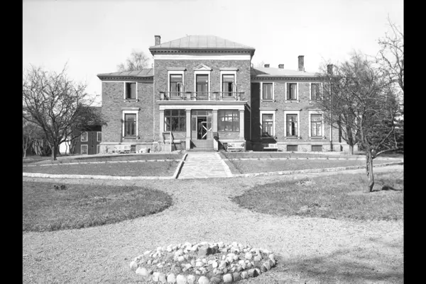 Vestre Grefsen gård, tegnet av Harald Olsen og bygget for broren Iver Bredo Olsen (1892 - 1896). Våningshus, fasade sett fra hagen, hageanlegg. St. Josephsøstrenes aldershjem fra 1935. Bildets originale tittel: Grefsen øvre er feil.