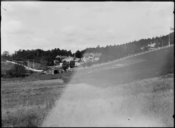 Sanatoriebygningene med den gamle hovedbygningen fra Vandcuranstaltens tid. I bakgrunnen "solkassene" der pasientene tilbrakte mye tid når været tillot det.