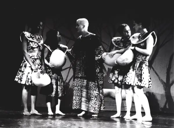 "Gadza-dronningens dilemma", teaterforestilling på Parkteatret. 14-15. april 2000.Regi: Richard DanquahMed elever fra Nordic Black Theatres teaterskolen, Francis Kwadwo Agbabli, Vovoli Huntra og James Adjei Agoe.Kontakt Nordic Black Theatre ved ev. bestilling av kopier.