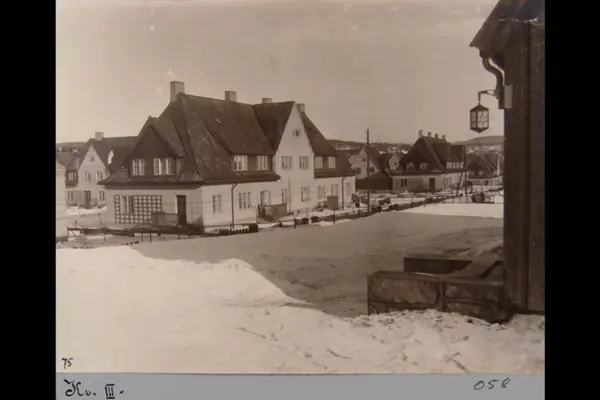 Kvartal III i Ullevål Hageby. Ullevålsalleen 30 - 32 i midten. Sannsynligvis fra 1920-tallet. Albumtittel: "Fotografier over Kristiania kommunes boligbebyggelse".