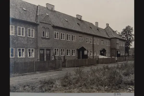 Bebyggelse i Lille Tøyen haveby (hageby). Fasader ved Tøienplassen. Sannsynligvis fra 1920-tallet. Albumtittel: "Fotografier over Kristiania kommunes boligbebyggelse".