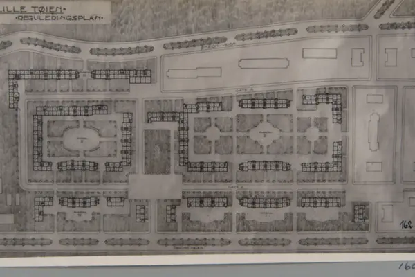 Regulerings / Utbyggingsplan for Lille Tøyen haveby (hageby). Kvartalsvis inndeling. Sannsynligvis fra 1920-tallet. Albumtittel: "Fotografier over Kristiania kommunes boligbebyggelse".