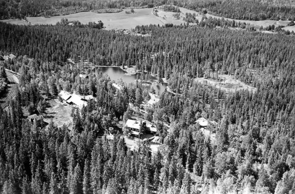 Bygningen nærmest trikkelinjen er Trollvasshytta, Rødkleivfaret 1. Holmenkollbanen, Lillevann. Strømsdammen og Strømsbråten i Sørkedalen i bakgrunnen. Bildets originale tittel "Lillevannsveien 88 - Vaumunds villa" er ikke korrekt, da hverken Lillevannsveien eller Vaumunds villa synes på bildet. Bygningen(e) nærmest trikkelinjen til venstre er Trollvasshytta med adresse Rødkleivfaret 1. Strømsdammen og plassen Strømsbråten i Sørkedalen i bakgrunnen. (Flyfoto)