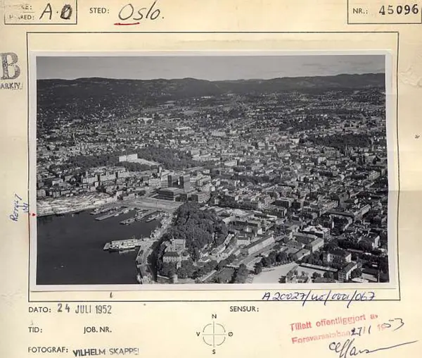 Korrekt referanse til dette bildet er "Fotograf: Widerøes Flyveselskap / Vilhelm Skappel. Oslo byarkiv/A-20027/Ua/0015/067"
