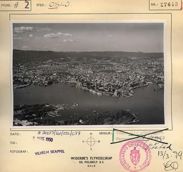 Korrekt referanse til dette bildet er "Fotograf: Widerøes Flyveselskap / Vilhelm Skappel. Oslo byarkiv/A-20027/Ua/0015/077"