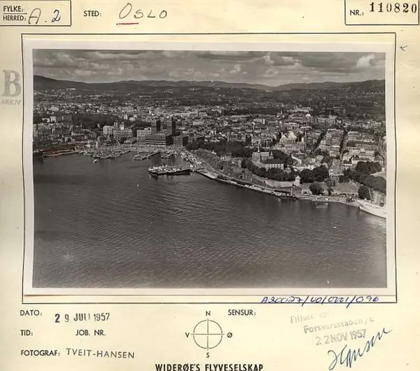 Korrekt referanse til dette bildet er "Fotograf: Widerøes Flyveselskap / Tveit-Hansen. Oslo byarkiv/A-20027/Ua/0015/096"