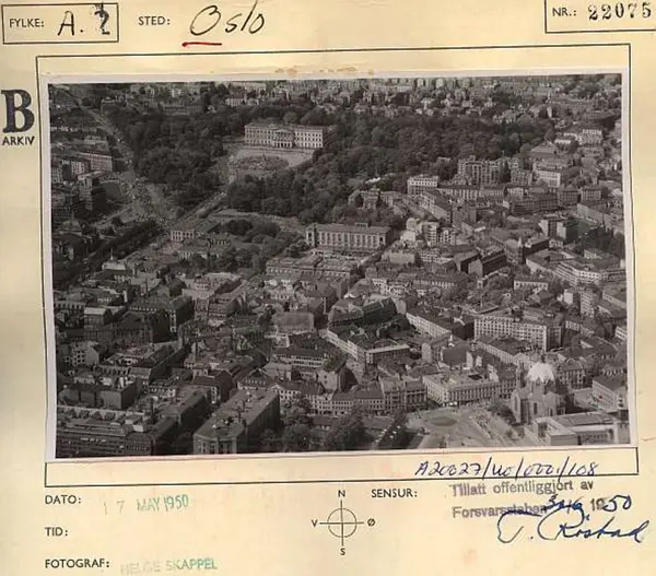 Korrekt referanse til dette bildet er "Fotograf: Widerøes Flyveselskap / Helge Skappel. Oslo byarkiv/A-20027/Ua/0015/108"