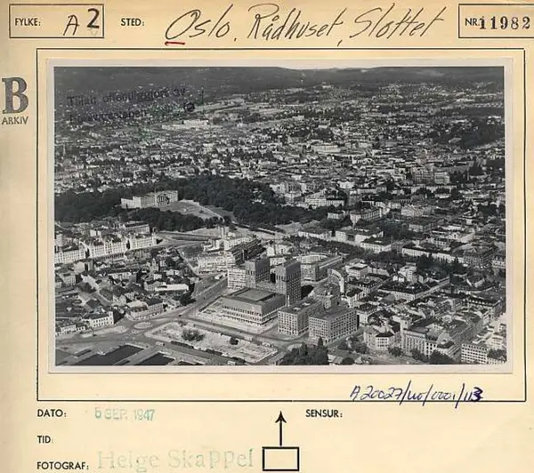 Korrekt referanse til dette bildet er "Fotograf: Widerøes Flyveselskap / Helge Skappel. Oslo byarkiv/A-20027/Ua/0015/113"