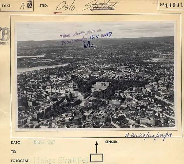 Korrekt referanse til dette bildet er "Fotograf: Widerøes Flyveselskap / Helge Skappel. Oslo byarkiv/A-20027/Ua/0015/118"
