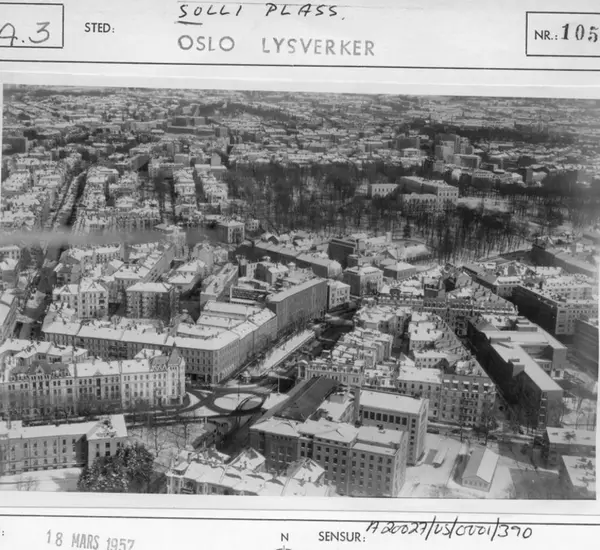 Drammensveien (Henrik Ibsens gate), Inkognitogata,Oscars gate, Observatoriegata, Solligata. Lapsetorvet . Oslo lysverker (Oslo Energi A/S). Det engelske kvarter. Oslo Handelsgymnasium. Nasjonalbiblioteket. (Flyfoto)