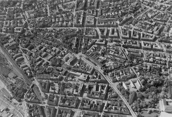 Drammensveien (nå delvis Henrik Ibsens gate), Bygdøy allé, Frognerveien, Niels Juels gate, Gyldenløves gate, Observatoriegata, Munkedamsveien, Parkveien, Hansteens gate, Huitfeldts gate. Solli plass (nå Lapsetorvet). Dronningparken med stallbygningen. Nasjonalbiblioteket. Mogens Thorsens stiftelse (der Hydro-bygget nå ligger). Mogens Thorsens park. (Flyfoto)