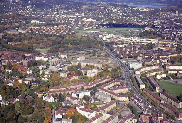 Evald Ryghs plass i front, Iladalen og Søren Jaabæks gate til høyre. Lovisenberg sykehus og kirke midt på bildet. Uelandsgate nede fra høyre krysser først Collets gate, deretter Griffenfelds gate. (Flyfoto)