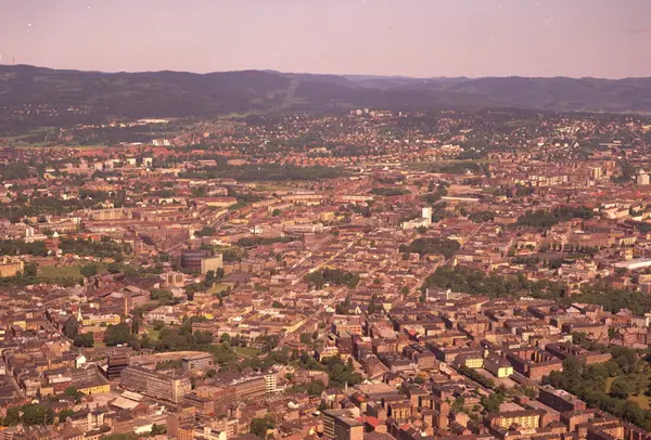 Jakob kirke ved Hausmanns gate til venstre. Hersleb skole og Vahl skole ved Jens Bjelkes gate til høyre. Gamle Aker kirke lenger bak til venstre, og Sofienberg kirke og Dælenenga idrettsplass til høyre. Sagene og Torshov i bakgrunnen. (Flyfoto)