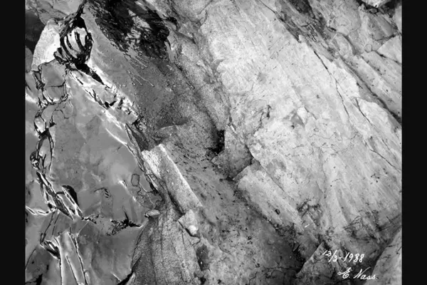 Utsnitt av fjellgrunnen under grunnarbeide ved byggingen av stasjonen. Albumtittel: "Oslo hovedbrannstasjon" (eg. identisk bildetittel til alle bildene i albumet)