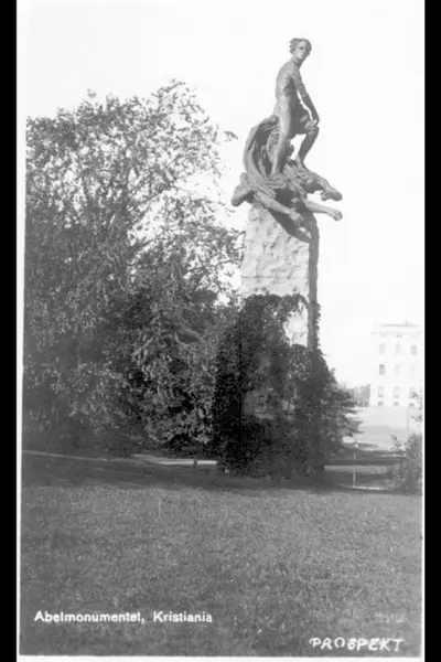Gustav Vigelands bronseskulptur av matematikeren Niels Henrik Abel, avduket i 1908 i Slottsparken (Abelhaugen.) Forestiller i formen en symbolsk gruppe.