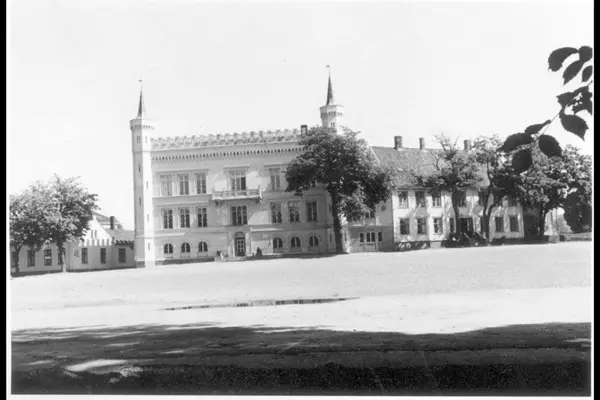 General Glads gård eller Kommandantboligen (i midten). Kommandantskapet eller Akershus kommandantskap (til høyre). Materialgården (til venstre). (Område til Akershus festning.)