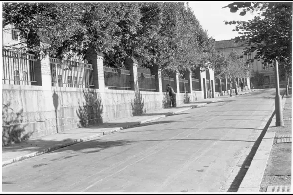 Fagerborg Gymnas (idag Fagerborg videregående skole) Skolen sett fra Oluf Ryghs gate som gikk like sør for skolegården, ble nedlagt og innlemmet i skolens idrettsplass, nå en del av Sophus Bugges plass. Abumtittel: "Skolene"