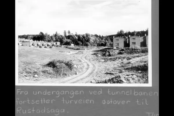 Fra undergangen ved tunnelbanen fortsetter turveien østover til Rustadsaga.