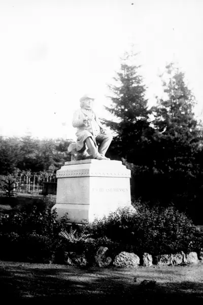 Statue i parken på St. Hanshaugen - P. Chr. Asbjørnsen. Fra avdukingen i 1891? Stadsingeniøren - Fotografier af Kristiania (albumtittel). Ca 1892, basert på øvrige daterte bilder i samme album.