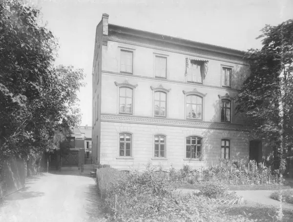 Bygård (No 7) med forhage, sted ukjent. Stadsingeniøren - Fotografier af Kristiania (albumtittel). Ca 1892, basert på øvrige daterte bilder i samme album.