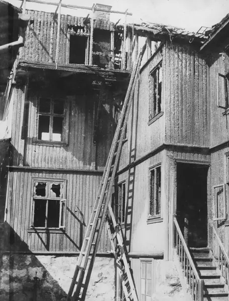 Brannskadet bygning. Samme bygning som foregående bilde - A-20189/U/002/037 - Nannestadgata? Stadsingeniøren - Fotografier af Kristiania (albumtittel). Ca 1892, basert på øvrige daterte bilder i samme album.