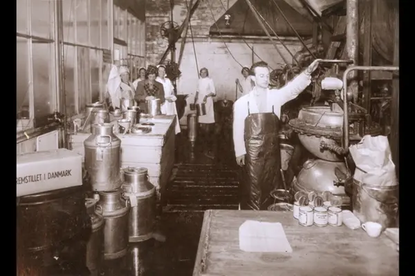 Danskehjelpens suppestasjoner i Oslo under okkupasjonen. Bilder samlet (og muligens tatt) av overlærer Katrine Arnesen (ved Sagene skole). Jakob menighet ordnet suppekoking på Christiania Dropsfabrikk for barn på Møllergata skole. Fabrikken sto under krigen pga. manglende råstoff. Kjelene som brukes er på 80 liter. Suppen ble hentet i dropsspann, og barna kappes om å hente den pga. lukten. Dropsspannene ble også lånt ut fra fabrikken til andre suppestasjoner.