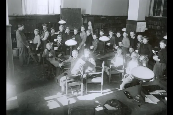 Danskehjelpens suppestasjoner i Oslo under okkupasjonen. Bilder samlet (og muligens tatt) av overlærer Katrine Arnesen (ved Sagene skole). Sofienberg og Lakkegata skole fikk suppe via Petrus menighet. Menigheten hadde ordnet med suppe for barna fra Sofienberg skole i Grünerløkka Folkets hus, og på det store kjøkkenet kokte fru Tinglund hver dag ca. 900 porsjoner suppe.