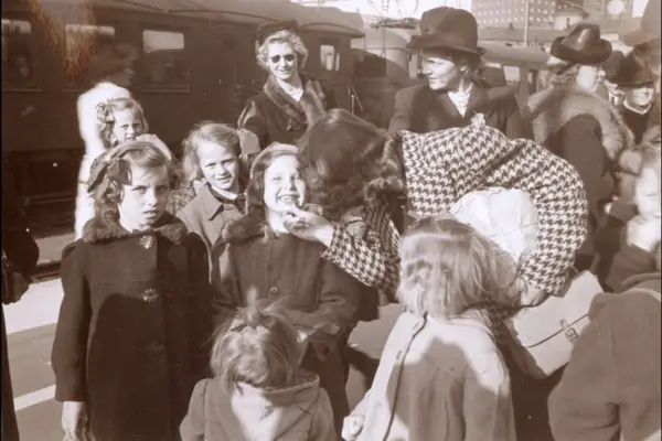 Oslo menighetspleiers fellesutvalg formidlet innbydelser og organiserte barnereiser under okkupasjonen. Barna fikk komme på landet "å fete seg opp". De ble sendt til bygder rundt i hele Sør-Norge. Vel tilbake på Vestbanestasjonen i Oslo. En tann er felt under landoppholdet.