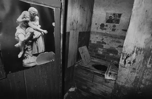 Utedo i bygård. Danmarks gate 25. Bildet er publisert på s. 126 - 127 i boken Oslo-bilder. Fotografiet er fra prosjektet og boka ''Oslo-bilder. En fotografisk dokumentasjon av bo og leveforhold i 1981 - 82''. Kontakt Samfoto ved ev. bestilling av kopier.