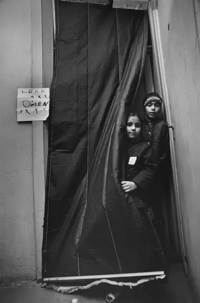 Barn i døråpningen. Innvandrernes boforhold. Fotografiet er fra prosjektet og boka ''Oslo-bilder. En fotografisk dokumentasjon av bo og leveforhold i 1981 - 82''. Kontakt Samfoto ved ev. bestilling av kopier.