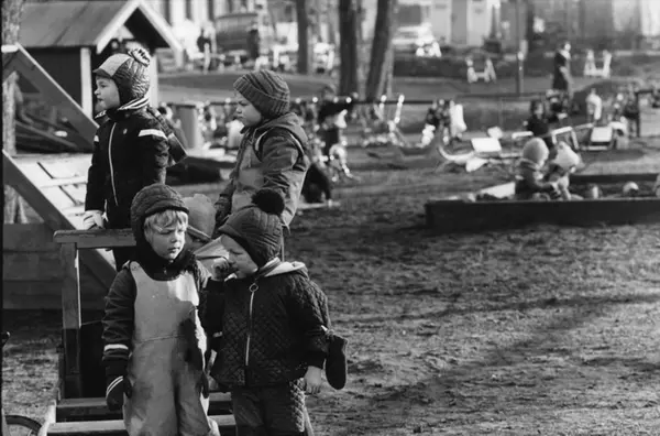 Barn i lek. Barneparken i Sofienbergparken. Fotografiet er fra prosjektet og boka ''Oslo-bilder. En fotografisk dokumentasjon av bo og leveforhold i 1981 - 82''. Kontakt Samfoto ved ev. bestilling av kopier.