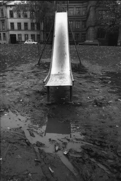 Sklie i Sofienbergparken. Fotografiet er fra prosjektet og boka ''Oslo-bilder. En fotografisk dokumentasjon av bo og leveforhold i 1981 - 82''. Kontakt Samfoto ved ev. bestilling av kopier.